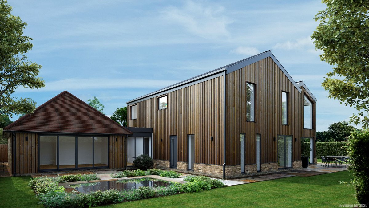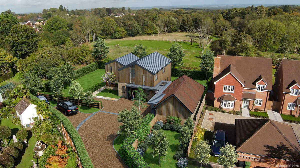 A stunning plot with far reaching countryside views, set in 0.27 acres. The site has planning for a detached 5-bedroom contemporary barn style house, with car port and home gym/office, designed with sustainability in mind, incorporating the latest renewables. Total GIA is 2950 sqft. The plot has been cleared, had new boundary fencing erected and with services installed (subject to final connection).