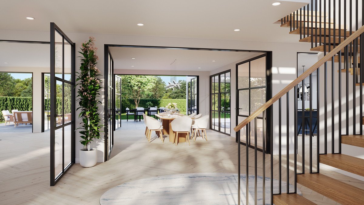 The proposed ground floor offers a thoughtfully designed layout, centered around a vast open-plan kitchen and family room that serves as the heart of the home. This primary living space is complemented by two distinct reception rooms, a formal lounge for sophisticated entertaining and a separate dining room for hosting guests. This level also includes a dedicated home office, a practical utility room, and a substantial internal bike garage.