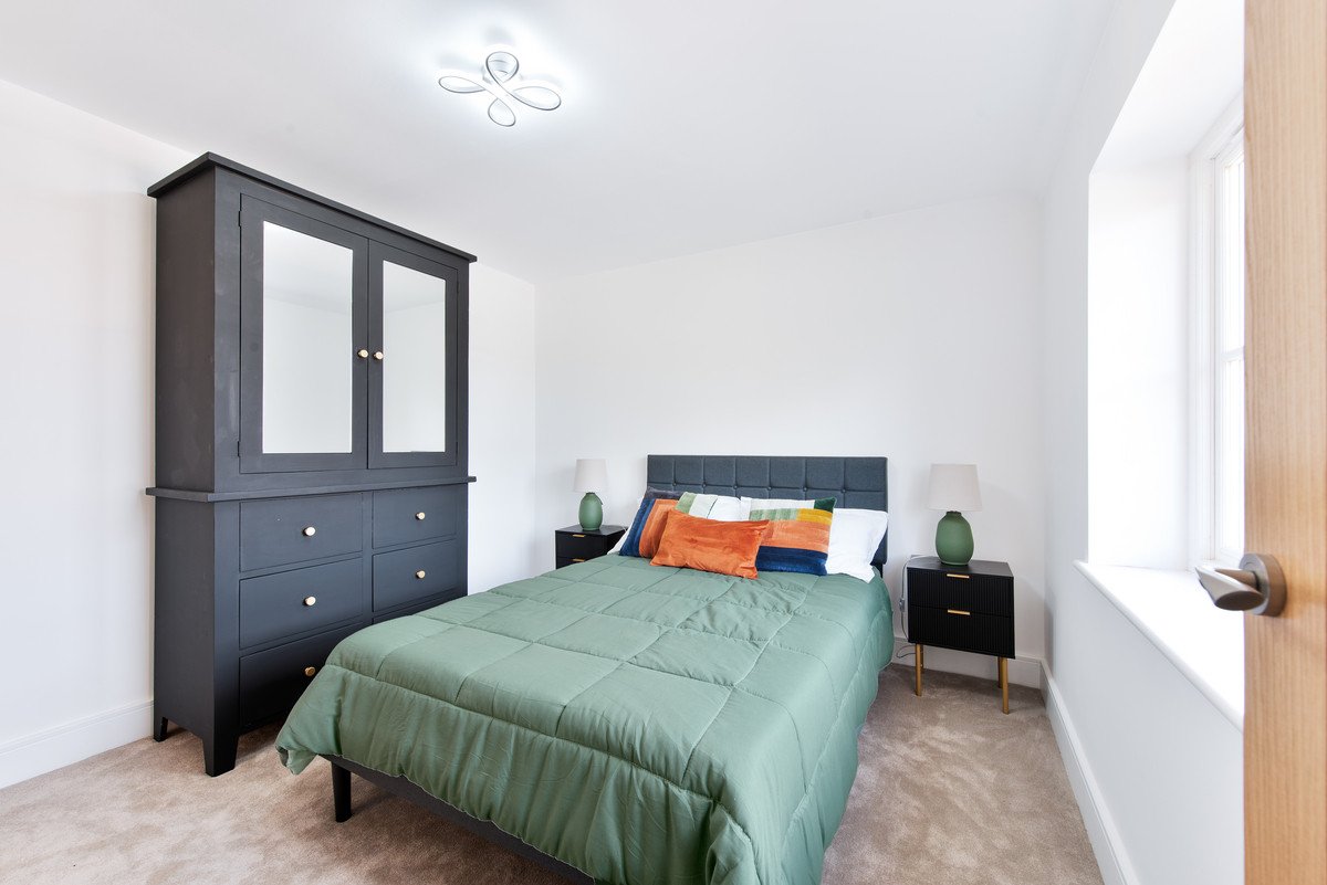 The principal suite on this level serves as a refined retreat, featuring its own sleek, private en-suite with contemporary fixtures. The remaining two doubles are served by a sophisticated family bathroom, which continues the home’s signature aesthetic of clean lines and high-end finishes.